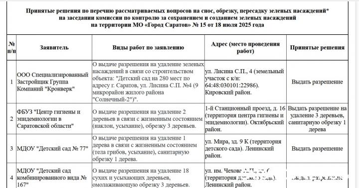 Как подчеркнули в комиссии, все деревья из списка признаны усохшими и представляющими угрозу для горожан и инфраструктуры. Решения принимались на основе заявлений от районных служб благоустройства, школ, детсадов и администраций.