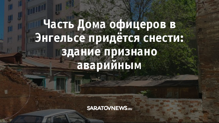 В Энгельсе при реконструкции гарнизонного дома офицеров, построенного в 1935 году, планируют снести часть конструкций. Об этом сообщил краевед и блогер Денис Жабкин после выезда градозащитного совета при областной думе на объект культурного наследия.