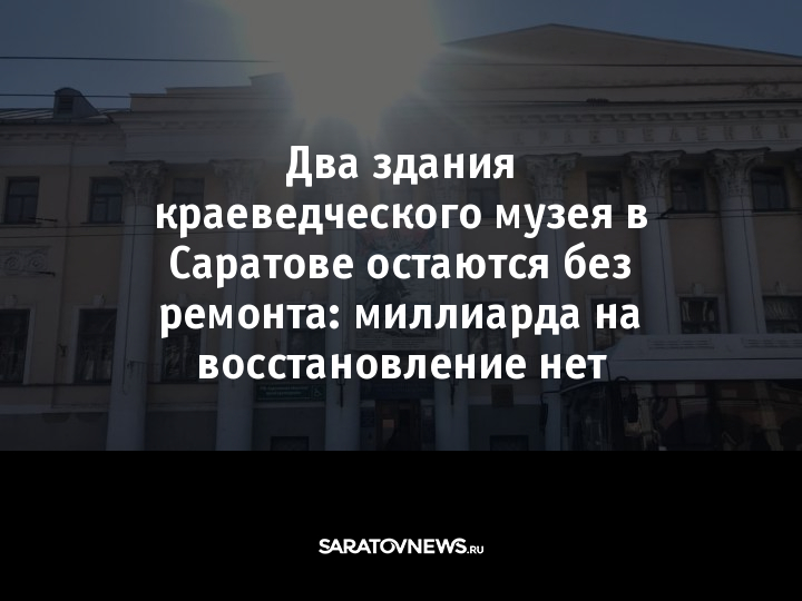 Здание Саратовского областного музея краеведения на улице Лермонтова, 34 нуждается в реставрации и сейчас находится в ограниченно-работоспособном состоянии. Об этом сообщил министр культурного наследия региона Владимир Мухин в ответ на редакционный запрос «СарИнформа».