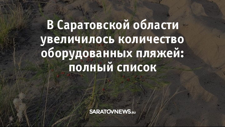 Среди новых мест для купания — пляж в санатории «Нива» (Марксовский район), лагере «Оплот» (Энгельсский район), а также муниципальные пляжи в Аткарском, Балашовском, Вольском и других районах области. В Саратове можно отдыхать на пляжах «Покорителей Волги», «Затон», «Городские пески» и других.