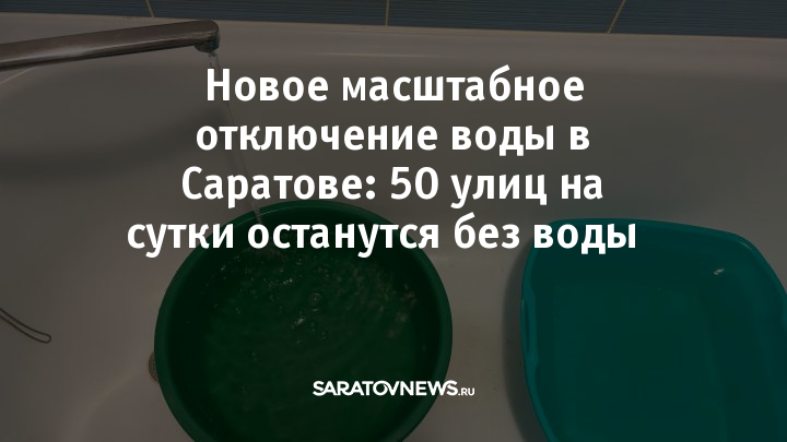Работы по вводу в строй нового водовода на улице Песчаной обернутся для огромного района Саратова настоящим "водным коллапсом". С 6 утра 29 июля до 4 утра 30 июля (22 часа) МУПП «Саратовводоканал» полностью перекроет холодную воду на 35 улицах, проездах и линиях. Вот полный список адресов, где нужно запасаться водой в вёдрах и баклажках: