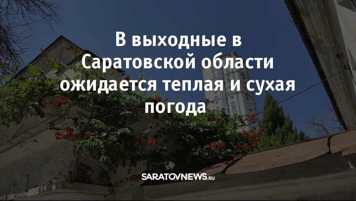 Жителей Саратовской области в предстоящие выходные ждет теплая и сухая погода. По данным регионального Гидрометцентра, осадков не ожидается благодаря антициклону, который установится над регионом.