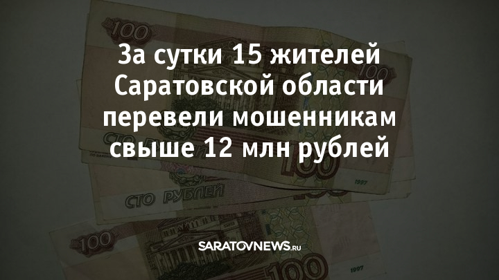 За сутки в Саратовской области зарегистрировано 15 фактов мошенничества. Общая сумма ущерба составила более 12 млн рублей. Среди потерпевших – жители Саратова.