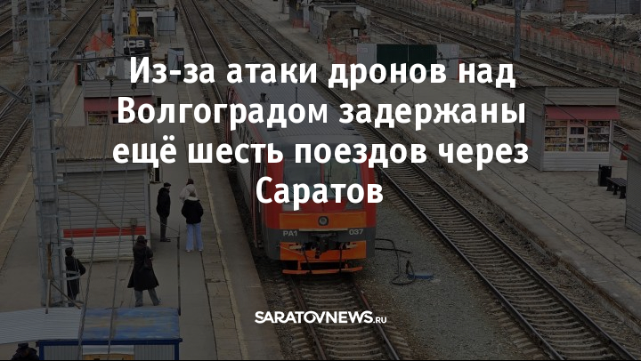 После падения обломков беспилотника на станции Жутово в Волгоградской области повреждена контактная сеть железной дороги. В результате этого инцидента, произошедшего в ночь на 27 июля, задерживаются ещё шесть пассажирских поездов, следующих через Саратов. Об этом сообщили в Приволжской железной дороге.