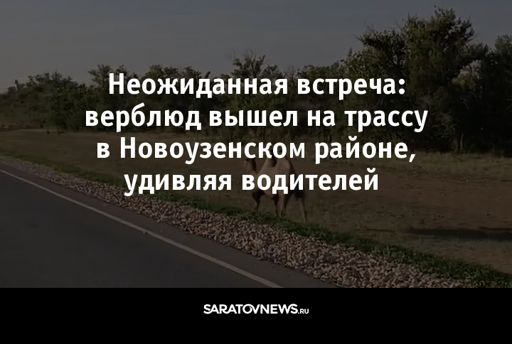 Необычное происшествие зафиксировано в Новоузенском районе Саратовской области — вдоль трассы спокойно прогуливался верблюд. Видео с животным, мирно шагающим по обочине, быстро разлетелось по социальным сетям, вызвав удивление у местных жителей и водителей.