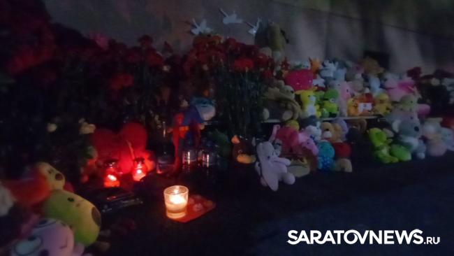 Жители Саратова организовали стихийный мемориал возле разрушенной взрывом десятиэтажки на улице Блинова, 2. Саратовцы принесли к дому цветы, игрушки, зажгли свечи.