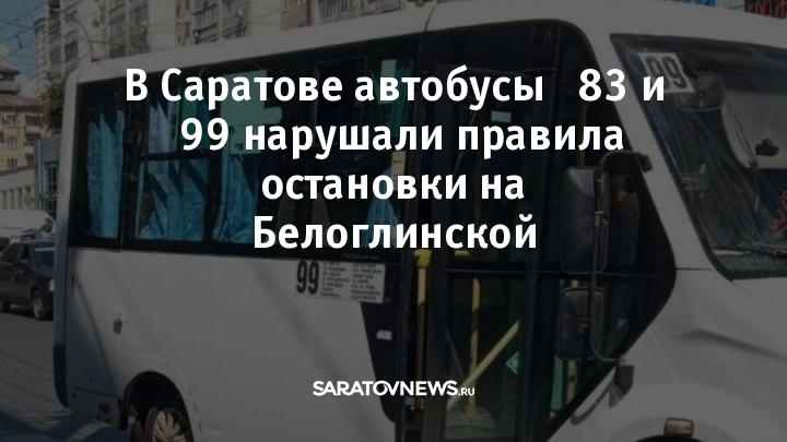 В Саратове проверили работу автобусных маршрутов № 83 и № 99. Рейд прошёл на остановке «Улица Белоглинская» по улице Чапаева с 14:20 до 16:20, сообщает мэрия.