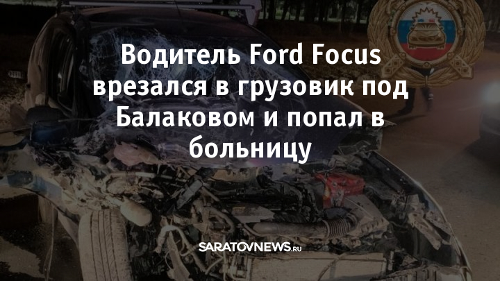 В субботу, 27 июля, около 22:30 на 13-м километре подъезда к Балаковской АЭС, недалеко от трассы Р-228, столкнулись легковой автомобиль и грузовик. По предварительным данным, 41-летний мужчина за рулем Ford Focus не справился с управлением и врезался в стоящий Volvo SF SH12 с полуприцепом.