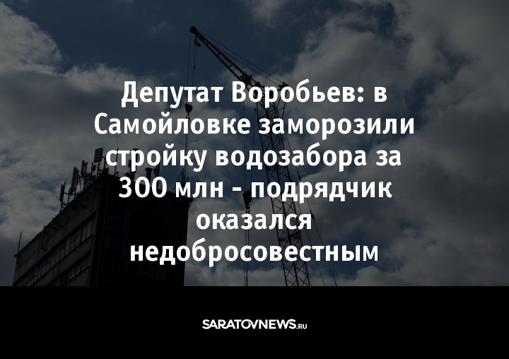В поселке Самойловка Саратовской области приостановили строительство нового водозабора. Об этом сегодня рассказал депутат Госдумы Андрей Воробьев («Единая Россия»).