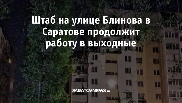 В Саратове штаб по ситуации на улице Блинова, 2 будет работать в выходные дни. Как сообщают в администрации города, помощь жителям окажут в школе №103.