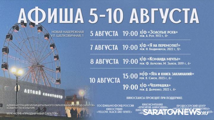 В Летнем кинотеатре Саратова на Новой набережной продолжаются показы художественных фильмов.