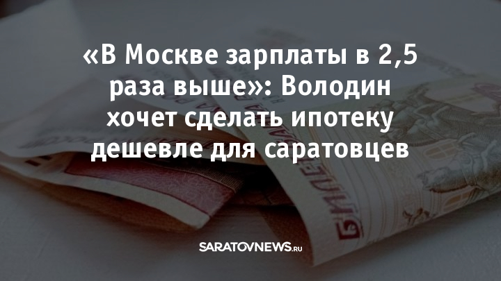 Спикер Госдумы Вячеслав Володин предложил изменить условия ипотечного кредитования в зависимости от уровня зарплат в регионах. Сейчас ставки одинаковы для всех, но в Москве доходы граждан в среднем в 2,5 раза выше, чем в Саратовской области.