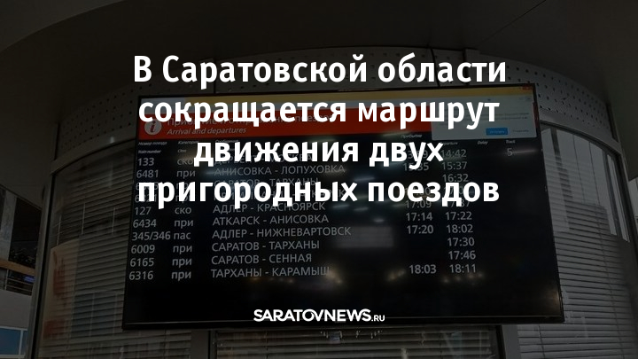 8, 10, 14, 16, 20, 22, 30 августа в Саратовской области временно сокращается маршрут движения двух пригородных поездов. Об этом сообщается Саратовская пригородная пассажирская компания.