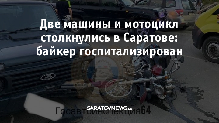 В Саратове на улице Лунной произошло серьёзное ДТП с участием двух автомобилей и мотоцикла. Водитель двухколёсного транспорта получил травмы и был доставлен в больницу, сообщили в городской ГИБДД.
