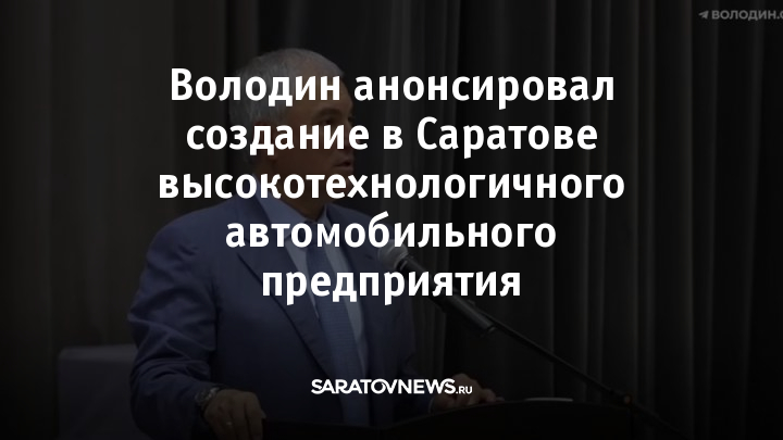 В ходе очередной рабочей поездки в Саратов Председатель Государственной Думы РФ Вячеслав Володин рассказал, что в настоящее время ведутся переговоры о создании в областном центре высокотехнологичного автомобильного предприятия.