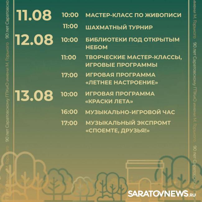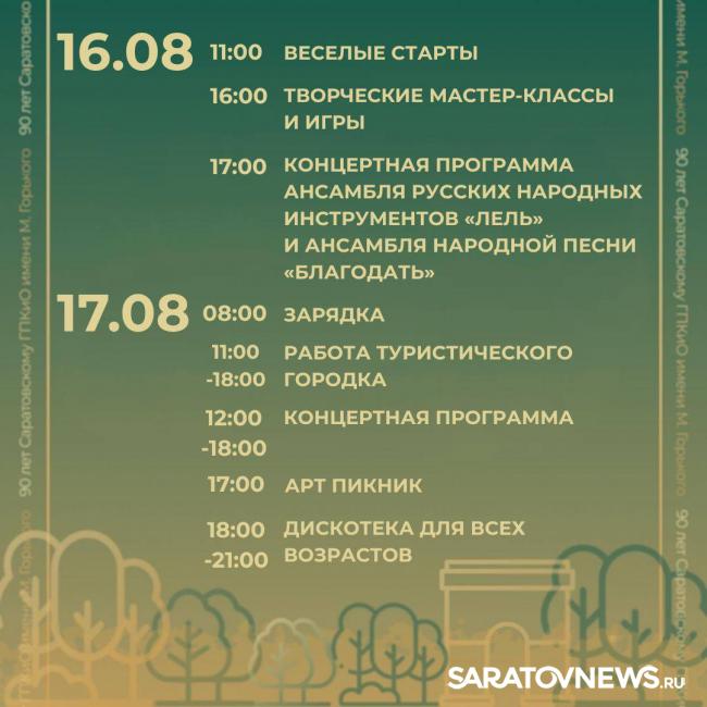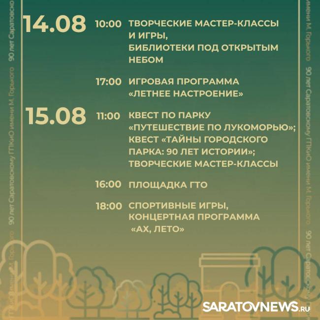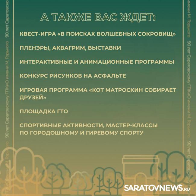 Саратовский городской парк культуры и отдыха празднует своё 90-летие. В честь этого события в парке пройдут праздничные мероприятия.