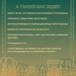 В министерстве информации и массовых коммуникаций региона поделились афишей мероприятий, которые пройдут в одном из самых больших парков города.