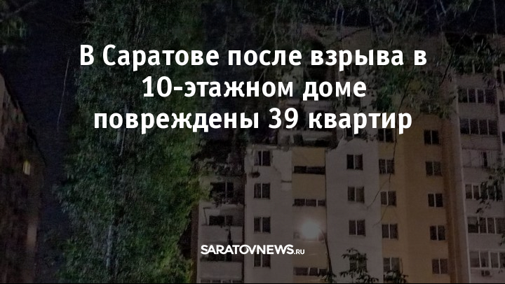 Взрыв в 10-этажном доме на улице Блинова в Саратове повредил 39 квартир в пятом подъезде. Об этом сообщил ТАСС первый заместитель главы города Максим Сиденко.