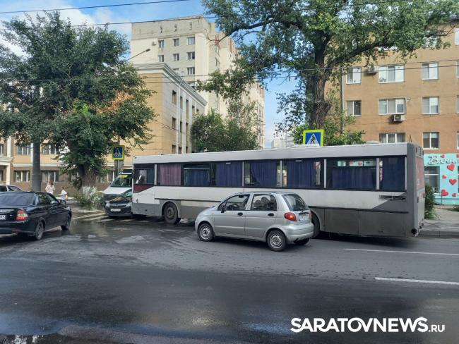 Несколько минут назад в центре Энгельса, на перекрестке улиц Горького и Халтурина, автобус маршрута 284Б, следующий в Саратов, столкнулся с двумя легковыми автомобилями. По предварительным данным, никто не пострадал.