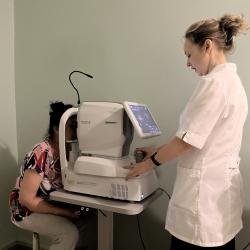 Полученное оборудование офтальмологического кабинета уникально, например, аппарат ОКТ, позволяет детально обследовать структуру глаза и выявлять ранние отклонения в состоянии сосудистой сетки и нервных окончаний. Картинка транслируется на монитор, где ее оценивает врач-офтальмолог. Такое исследование крайне важно для диагностики и наблюдения при диабетической ретинопатии. Показания к исследованию определяет врач после обследования и очной консультации, также как и показания клазерной коагуляции для предотвращения нежелательных последствий диабета.