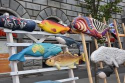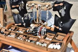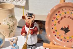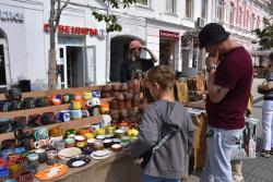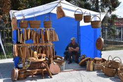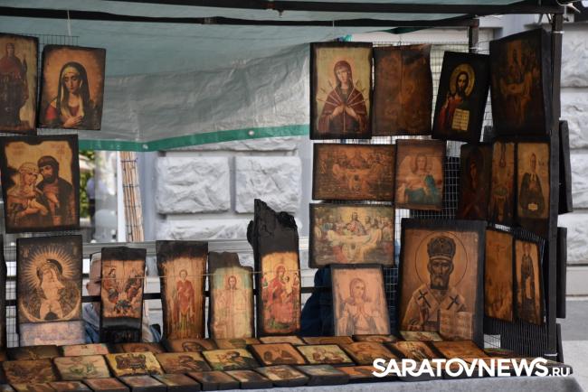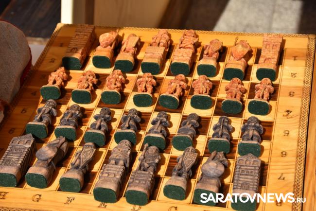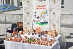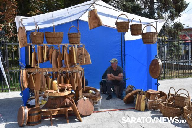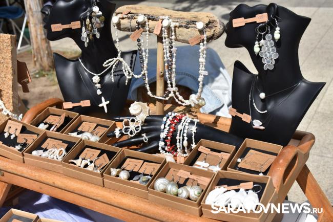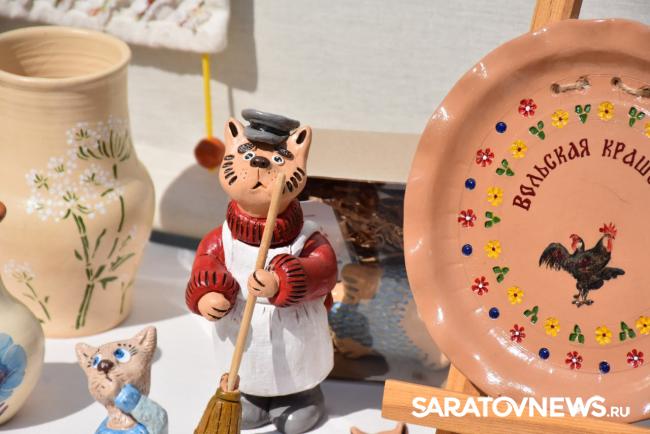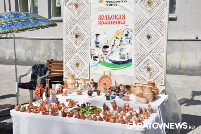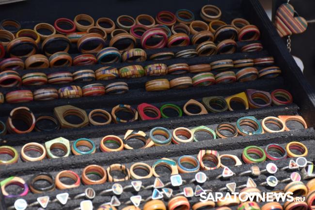 Гости ярмарки могут купить вольскую глиняную посуду, игрушки и даже «крашенку» — местный вид росписи, который возродили меньше десяти лет назад. Рядом — необычные украшения из обломков скейтбордов: значки, браслеты и гребни. Продавец объяснил, что доски делают из ценного канадского клена, поэтому их переработка — дело нужное.
