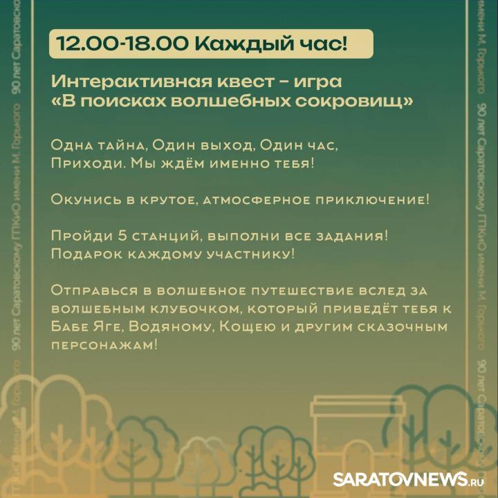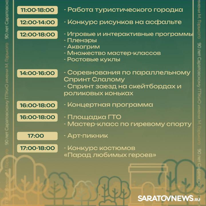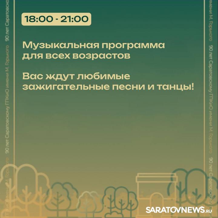 17 августа Саратовский городской парк культуры и отдыха им.Горького отметит 90-летний юбилей. Программа мероприятий стартует в 11.00 и завершится в 21.00. Об этом сообщает мэрия.