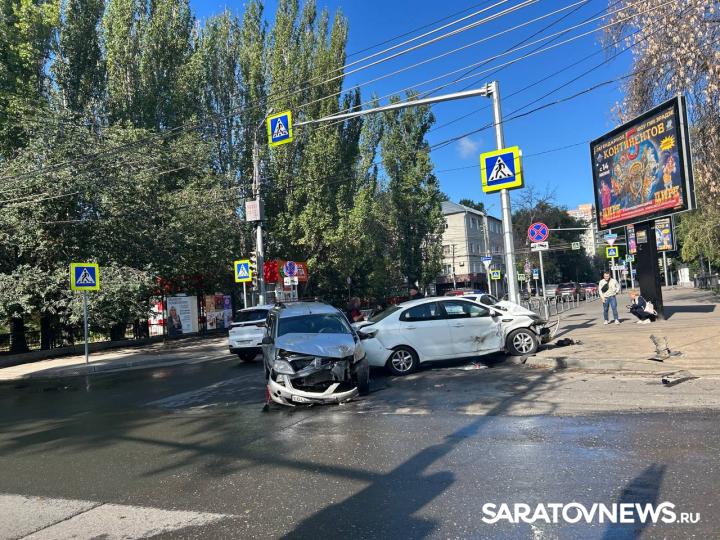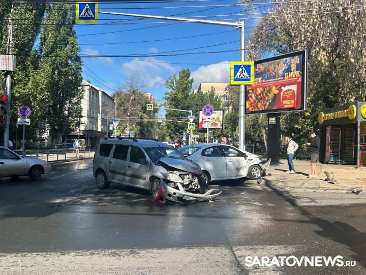 19 августа в 7 часов утра в Саратове на перекрестке улиц Большой Казачьей и Астраханской произошло ДТП: столкнулись «Лада» и «Киа». От удара «Лада» врезалась в столб.