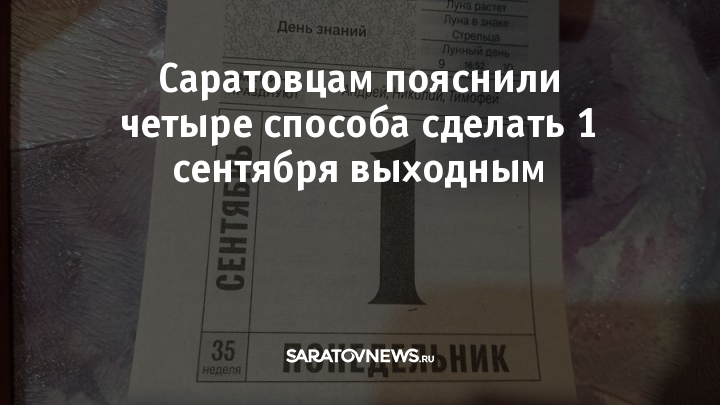 Жителям Саратовской области рассказали, как сделать День знаний (1 сентября) выходным.