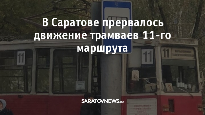Несколько минут назад в Саратове прервалось движение трамвайного маршрута №11. Об этом сообщает профильный паблик в телеграм.