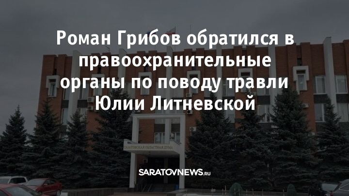 Зампред Саратовской областной Думы Роман Грибов обратился в правоохранительные органы по поводу травли депутата Юлии Литневской.