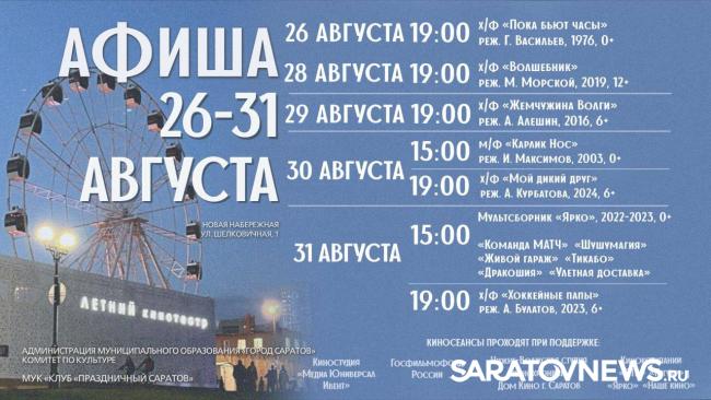 Саратовцам представили афишу летнего кинотеатра на набережной. на этой неделе в программе как классические, так и современные картины, они подойдут для всей семьи, сообщили в администрации города.