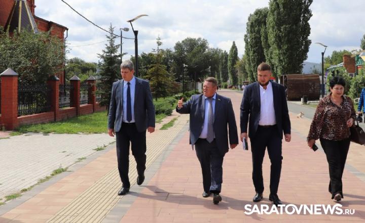 Депутат Госдумы РФ Николай Панков с рабочей поездкой посетил Ершов, где побывал в парке имени Пушкина. Здесь, за счет федеральных средств, продолжается благоустройство, в частности, меняют тротуарную плитку, уложенную несколько лет назад.