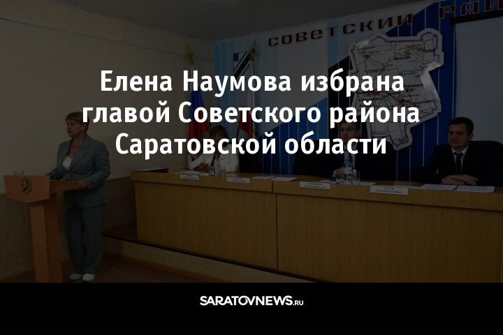 В Советском районе Саратовской области состоялось заседание Муниципального Собрания, на котором единогласно избрали нового руководителя муниципалитета. Главой района стала Елена Наумова, кандидатура которой была представлена конкурсной комиссией.