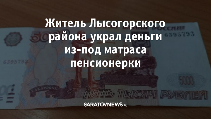 «Ночью 22 июня 2025 года мужчина, находясь в состоянии алкогольного опьянения в р.п. Лысые Горы по месту проживания потерпевшей, знал о том, что последняя хранит свою пенсию под матрасом дивана похитил 5 тысяч рублей», - сообщает прокуратура Саратовской области.