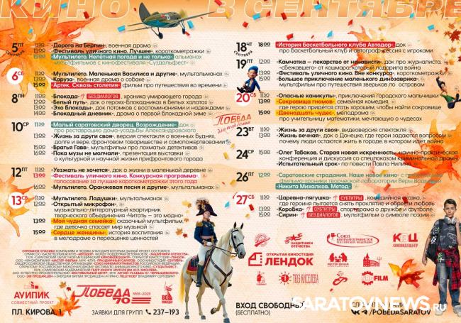 Саратовцам представили анонс киносеансов и мероприятий на сентябрь 2025-го года.