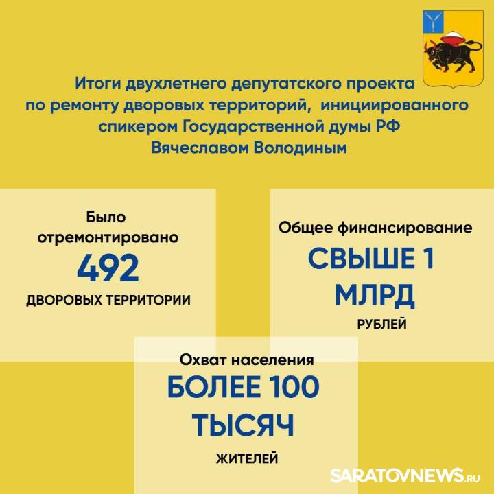 Накануне в Энгельсе завершен депутатский проект по ремонту дворовых территорий, инициированный спикером Государственной Думы РФ Вячеславом Володиным. Он помог благоустроить дворы, где жители не видели ремонта многие годы.