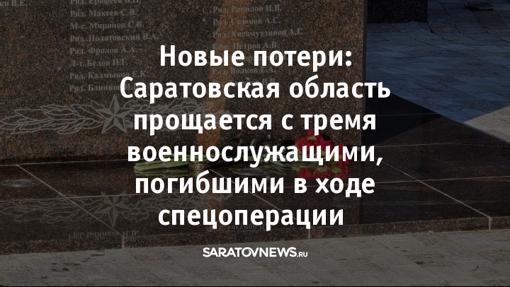Саратовская область вновь скорбит о погибших защитниках. В ходе специальной военной операции смертью храбрых пали трое контрактников из региона, сообщили администрации муниципальных образований Саратовской области. Среди них — Павел Шелепов (рядовой, село Александровка Советского района), Николай Татауров (посёлок Целинный Перелюбского района) и Александр Клинков (биография не раскрыта).