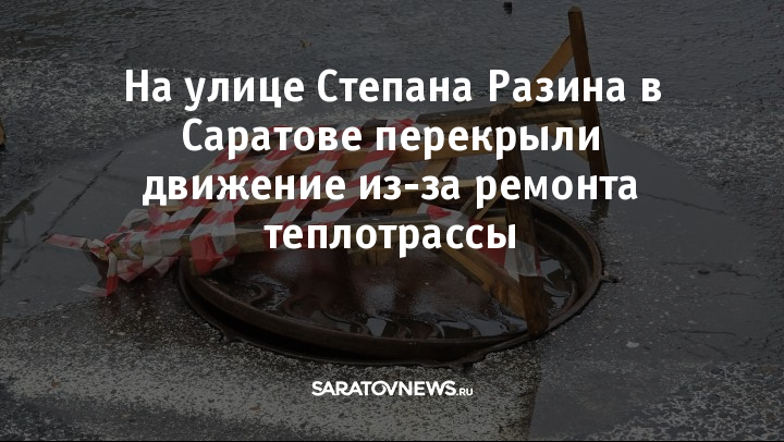 Сегодня, 8 сентября, саратовский филиал компании «Т Плюс» начал ремонт трубопровода на улице Степана Разина. В связи с проведением работ временно закрыто движение автотранспорта на участке между улицами Кутякова и Зарубина.