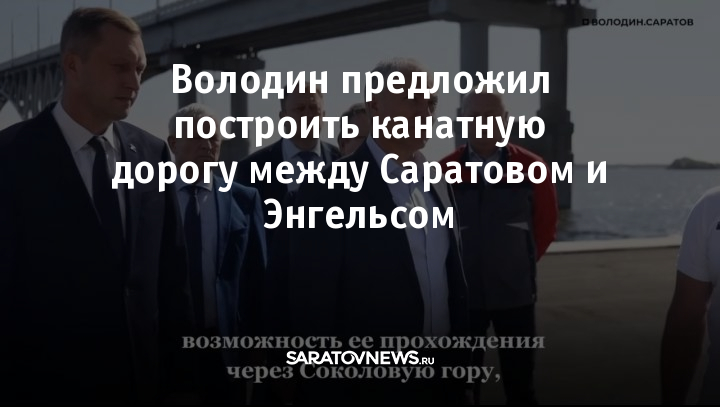 Председатель Госдумы Вячеслав Володин во время рабочей поездки в Саратов провёл встречу с губернатором Романом Бусаргиным и главой города Михаилом Исаевым. На совещании он озвучил идею масштабного проекта — строительства канатной дороги, которая соединит Саратов и Энгельс, а также обеспечит доступ на остров для отдыха жителей обоих городов.