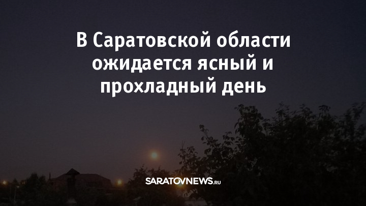 13 сентября в Саратовской области с утра прогнозируется облачная погода, а весь оставшийся день – ясная. Подует ветер северо-восточного направления со скоростью 5-7 метров в секунду. Об этом сообщает региональный Гидрометцентр.