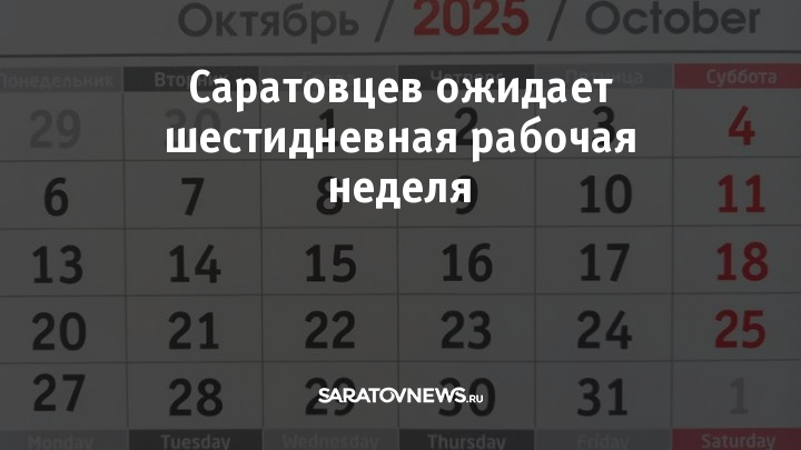 Жителей Саратовской области ожидает шестидневная рабочая неделя. Она продлится с 27 октября по 1 ноября, а рабочий день в субботу будет сокращенным как предпраздничный перед Днём народного единства.