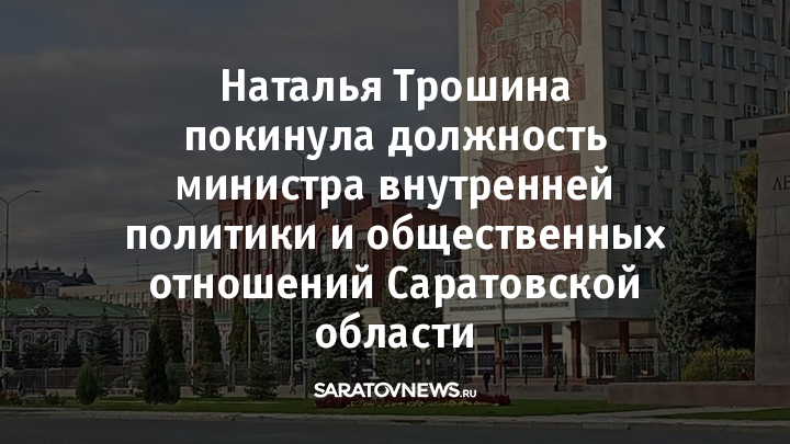 Губернатор Роман Бусаргин подписал постановление об отставке министра внутренней политики и общественных отношений Саратовской области Натальи Трошиной. Соответствующую информацию распространила пресс-служба регионального правительства.