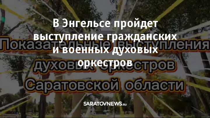 20 сентября в городском парке «Покровский» состоится выступление гражданских и военных духовых оркестров Саратовской области. Об этом сообщается на сайте районной администрации.