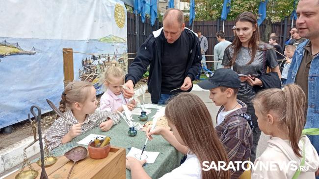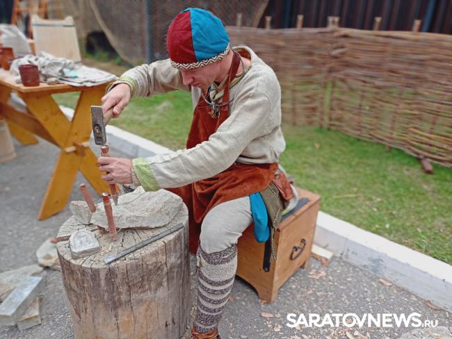Саратовцам предлагалось освоить искусство письменности, поиграть в старинные игры, попробовать средневековое гадание, отчеканить сувенирную монетку времен Золотой Орды, и даже примерить на себя роль археолога, а также удержать равновесие на настоящих ходулях.