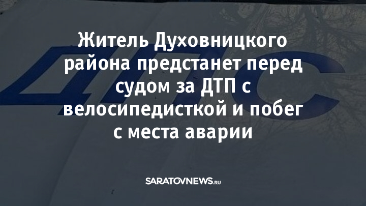 Прокуратура Духовницкого района утвердила обвинительное заключение по уголовному делу в отношении 38-летнего местного жителя. Ему предъявлено обвинение по пункту «б» части 2 статьи 264 УК РФ — нарушение правил дорожного движения, повлёкшее тяжкий вред здоровью человека и сопряжённое с оставлением места происшествия.