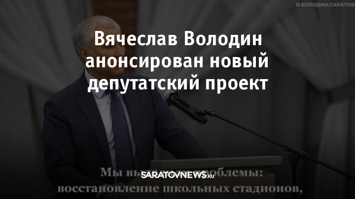 Председатель Государственной Думы РФ Вячеслав Володин анонсировал новый депутатский проект по восстановлению школьных стадионов и установке игровых площадок в детсадах. Он будет реализован в 2026 году в 10 муниципалитетах Саратовской области.