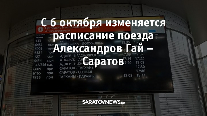 С 6 октября изменятся расписание пригородного поезда №6517 Александров Гай – Саратов-1, курсирующего по понедельникам и субботам. Об этом сообщает пресс-служба Саратовской пригородной пассажирской компании.