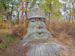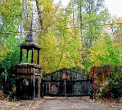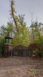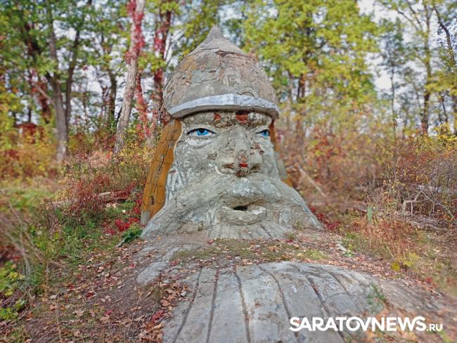 Прогулка по базе напоминает путешествие по страницам книги былин. Гостей встречают резные деревянные ворота с дозорной башней. Сразу за ними, в зарослях кустов, лежит покосившийся камень с полустёртыми указателями, как в русских сказках. В глубине территории можно обнаружить каменную голову богатыря. По словам местных жителей, когда-то скульптура умела говорить — внутри находился громкоговоритель.