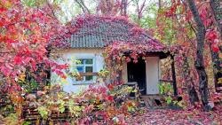 Сейчас от былого величия остались лишь воспоминания. По территории разбросаны полуразрушенные домики с балкончиками и лестницами, поломанные беседки и заржавевшие качели. Однако магия этого места не исчезла, особенно подчеркиваемая буйством осенних красок, когда дикий виноград с ярко-красной листвой полностью оплетает старые постройки.