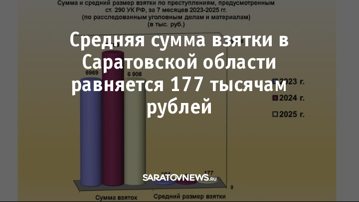 В Саратовской области средняя сумма взятки равняется 177 тысячам рублей. Об этом заявила региональная прокуратура в аналитическом материале про взяточничество, который охватывает первые полугодия 2023, 2024 и 2025 годов.